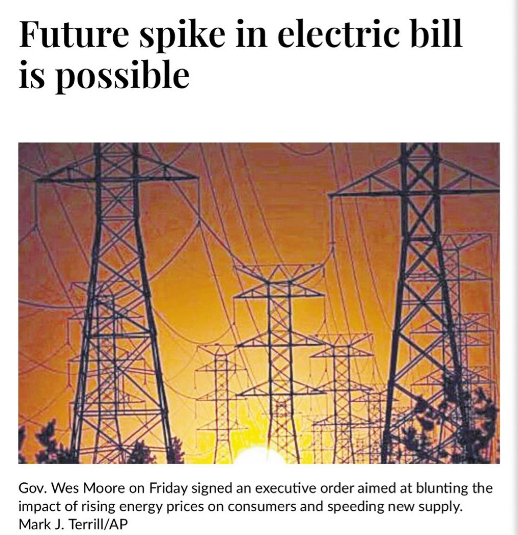 Maryland electricity bills are much higher than the rest of the country. Why? The green energy scam pushed through by liberals in Annapolis and Wes Moore.